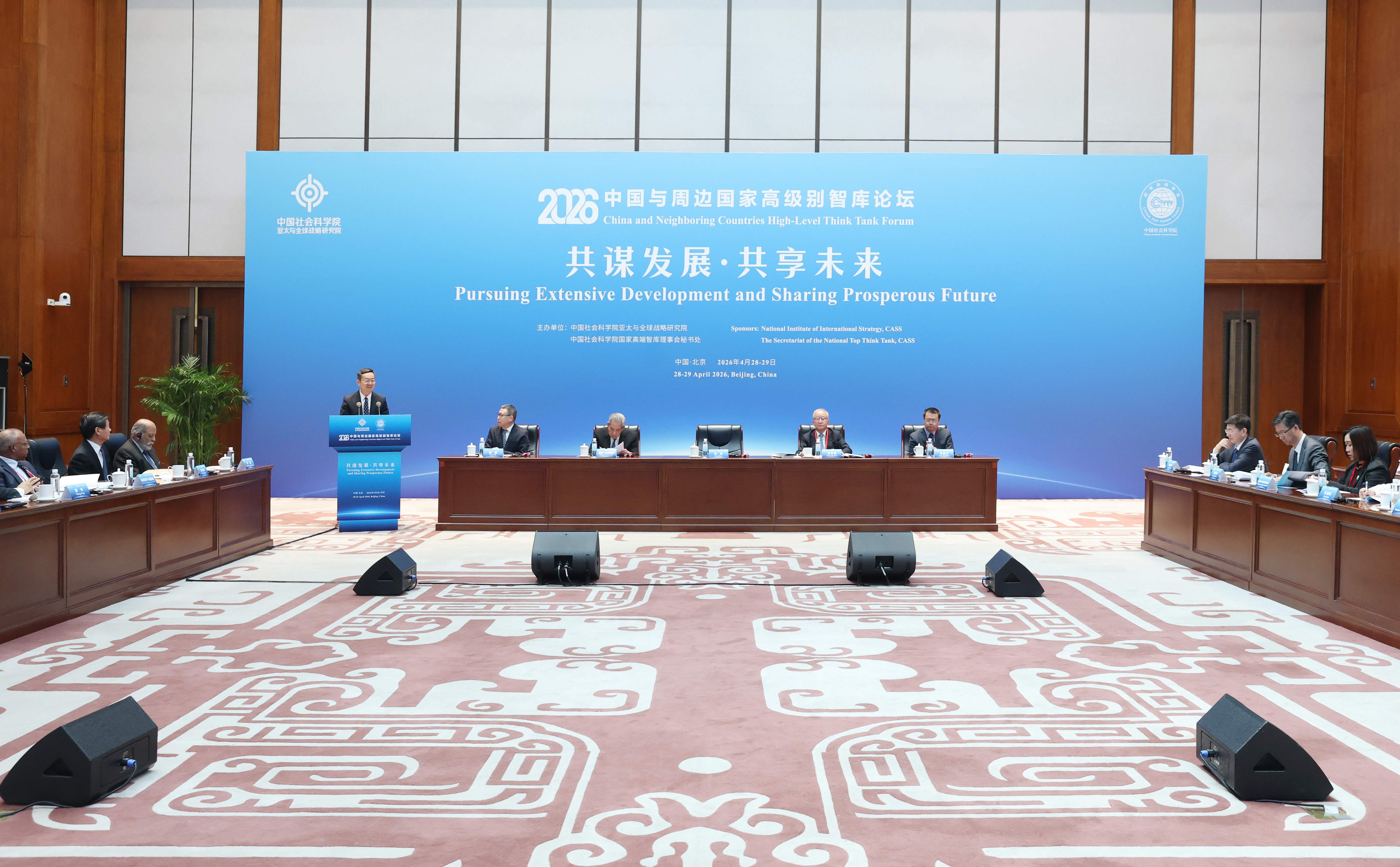 中国社会科学网讯(记者高莹)4月28日,中国与周边国家高级别智库论坛(2026)在北京召开。论坛主题为“共谋发展 共享未来”。中国社会科学院院长高翔,泰国前副总理披尼·扎禄颂巴,韩国前副总理玄旿锡出席开幕式并致辞。