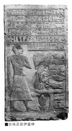 最后,凯伊墓碑还展现了古埃及当时社会生活的侧面。献祭碑文提到祭品单:“面包和啤酒、牛和家禽、雪花石膏和亚麻以及神祇生活所需的所有美好而纯净之物”。后来,一些墓碑的祭品单也将香和油都包括在内。另外,在墓碑的右下方是一个祭品桌,上面摆放着各种“必要的祭品”。须知,古埃及墓碑的主要内容之一是奉献祭品,希望墓碑主人在来世能够分享。墓碑主人必然选择他认为最重要的、最必不可少的生活物品作为献祭之物。可见,碑文列出的、浮雕描绘出来的祭品一定是古埃及人当时社会生活中必不可少的食物和日常用品。